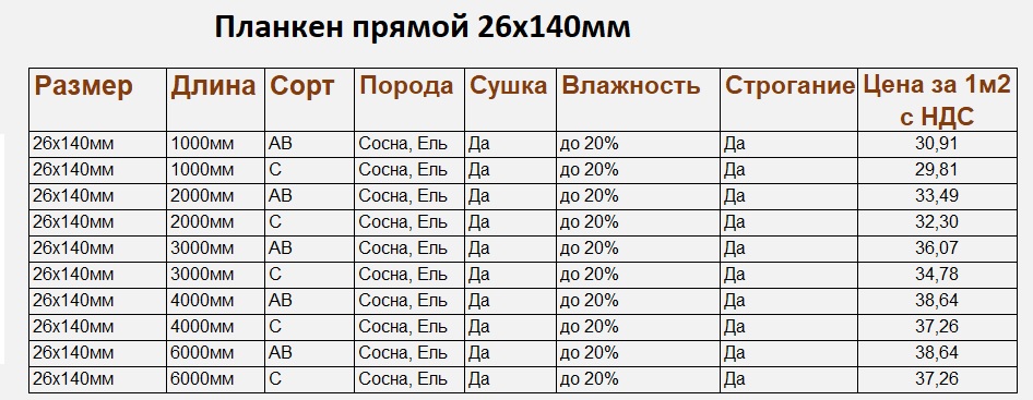 Планкен прямой 26х140мм, 1м2